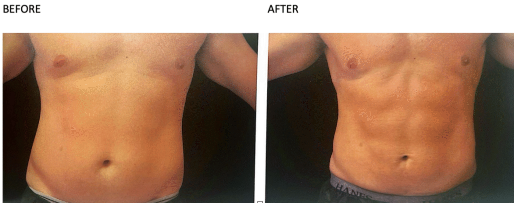 This shows how HIFEM alone reduced visceral fat by 14.3% in this patient without radiofrequency.