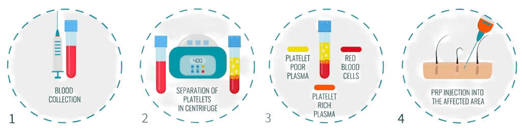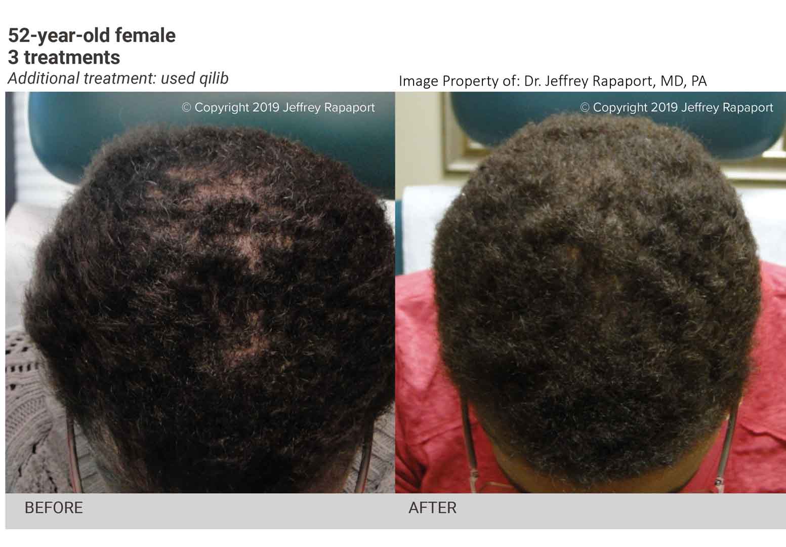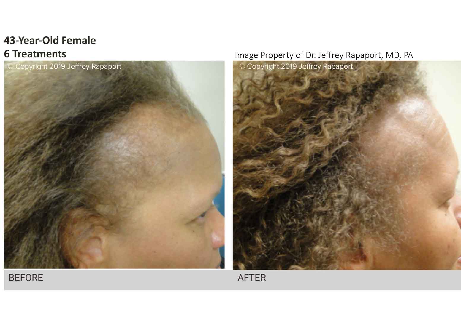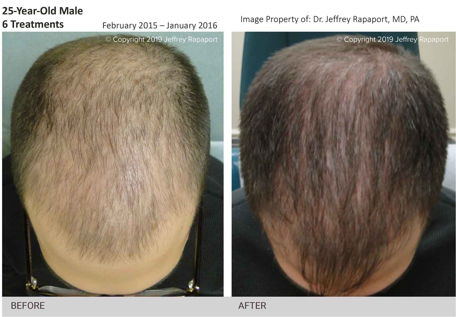 PRP works very well for androgenic alopecia (male and female pattern baldness). The studies show that you need one treatment a month for four months, then every 2-6 months for maintenance. Most patients will start to see results after a few treatments. Package deals and referral discounts are available.